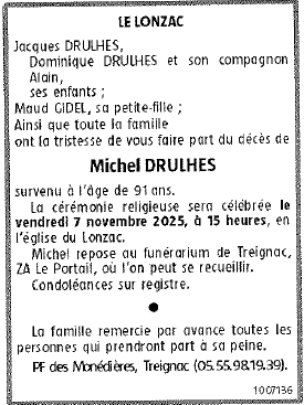 Décédé à Tulle (19000, France) le dimanche 2 novembre 2025 à l'âge de 91 ans