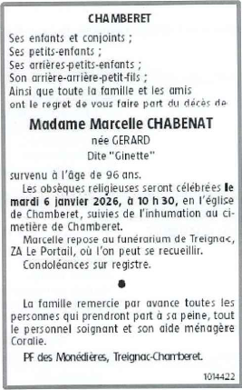 Décédée à Tulle (19000, France) le jeudi 1 janvier 2026 à l'âge de 96 ans